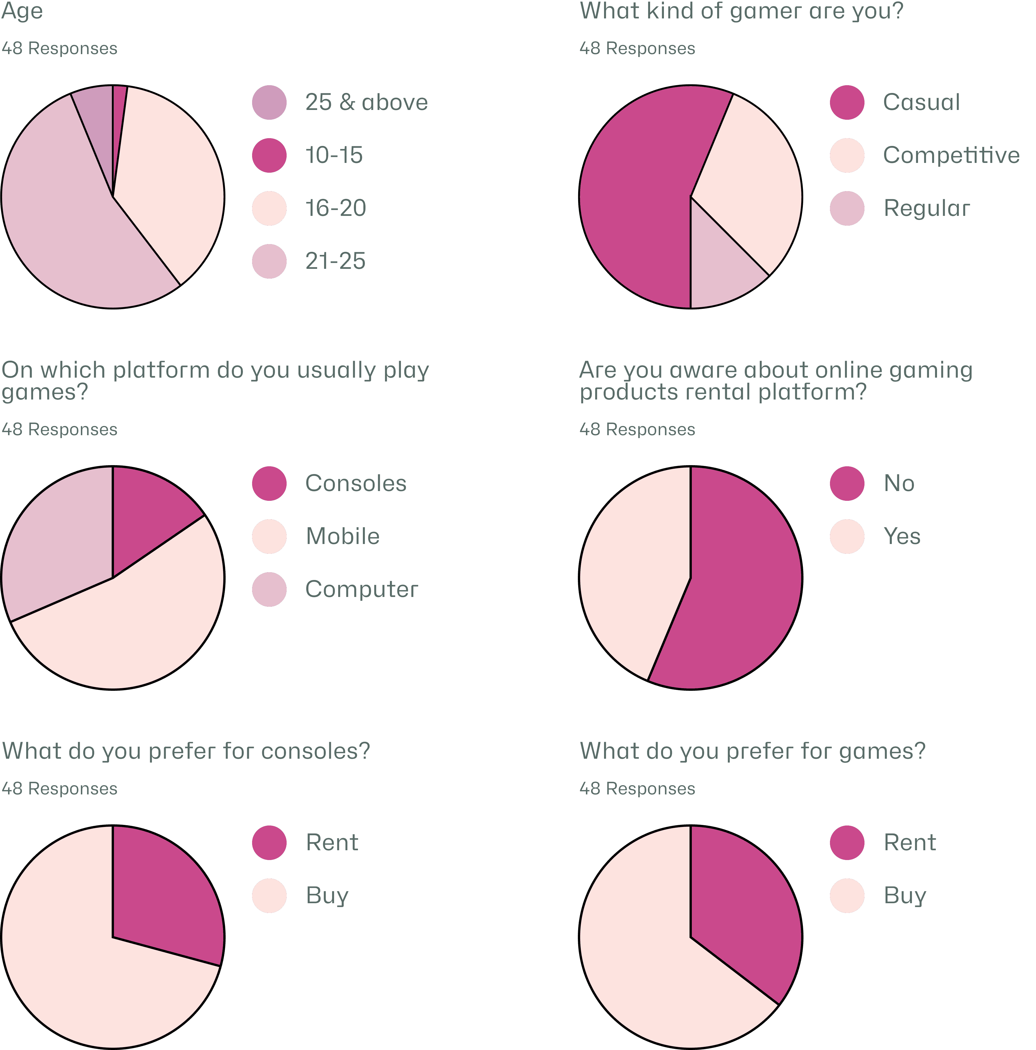 An online survey was conducted to gather information from various audiences from gaming backgrounds. The survey was about the challenges they are experiencing. 48 participants completed the questionnaire. I gathered the following information and identified what users want.